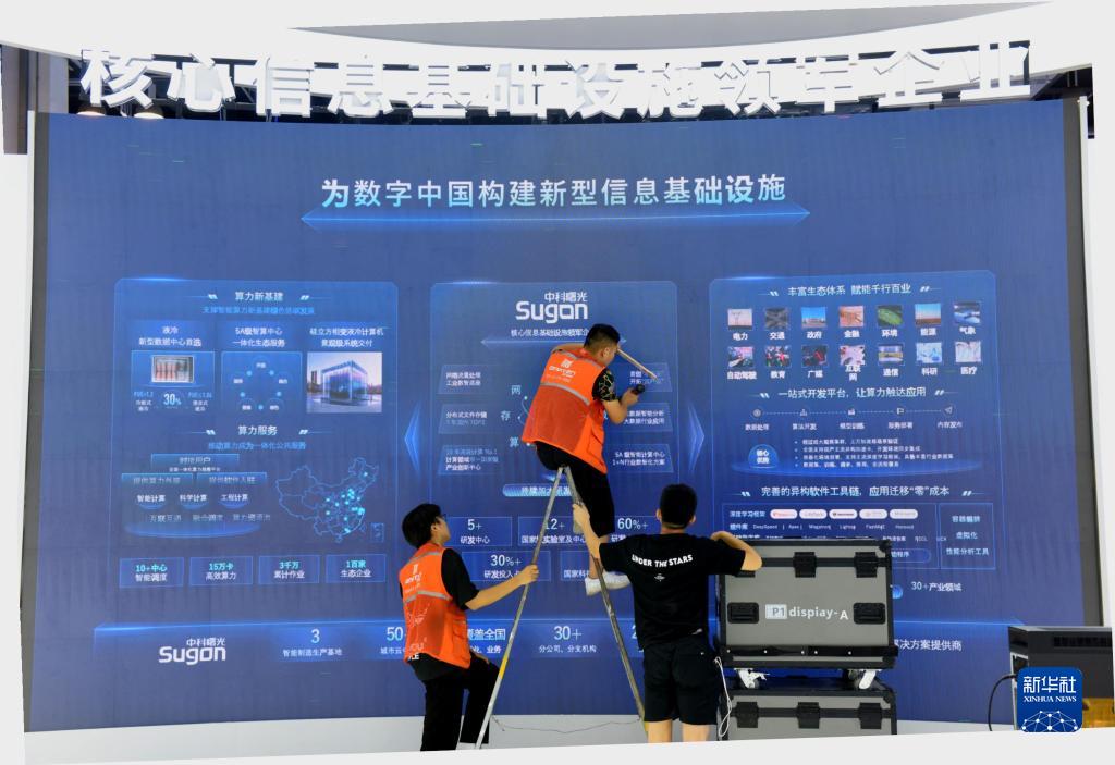 7月5日,几名工作人员在布置会场。新华社记者 黄晓勇 摄