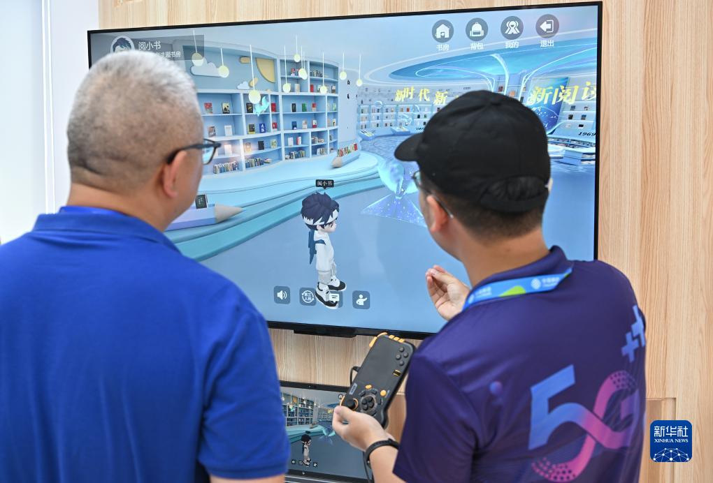 7月18日,与会者在大会设置的数字技术与应用成果展的中国移动展台了解“比特书房”元宇宙阅读。新华社记者 李鑫 摄