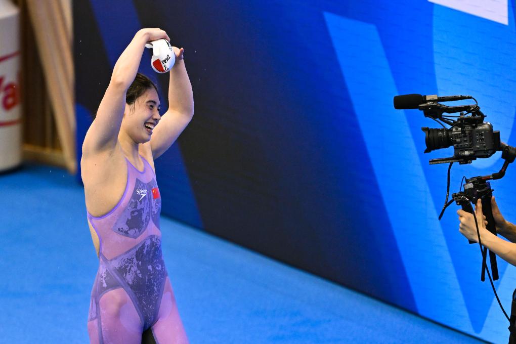 覃海洋摘金短短几分钟后,中国蝶泳名将张雨霏在女子100米蝶泳决赛中以56秒12的成绩获得冠军,如愿以偿地摆脱了世锦赛“铜牌专业户”的称呼,夺得个人首枚世锦赛金牌。虽然在东京奥运会拿到200米蝶泳冠军,但张雨霏在世锦赛上一直不太顺利,在2022年布达佩斯世锦赛女子蝶泳从50米到200米三个距离的比赛中全部获得铜牌。