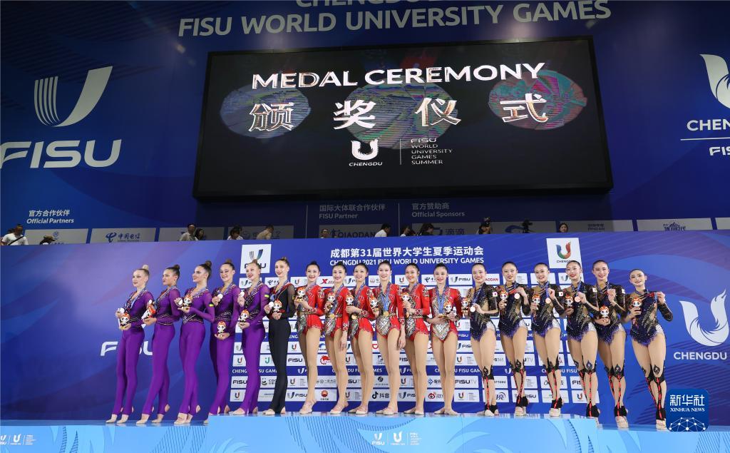 当日,第31届世界大学生夏季运动会艺术体操项目集体全能决赛第二轮在成都举行。最终,中国队以57.150分的总成绩获得冠军。