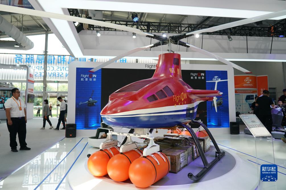这是9月3日在首钢园拍摄的一款应急救援无人直升机。新华社记者 张晨霖 摄