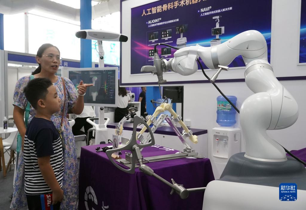 这是9月3日在首钢园拍摄的一款人工智能骨科手术机器人。新华社记者 任超 摄