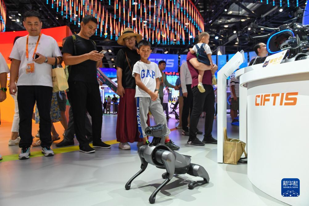 2023年中国国际服务贸易交易会于9月2日至9月6日在北京举办,众多科技产品亮相展区,吸引观众驻足参观。