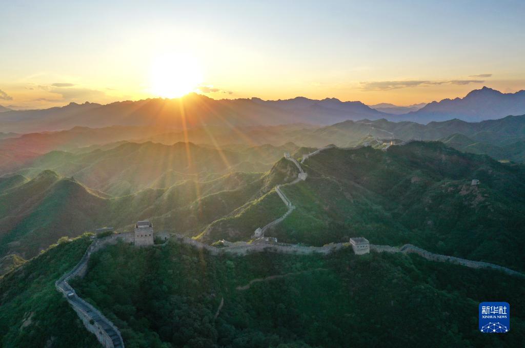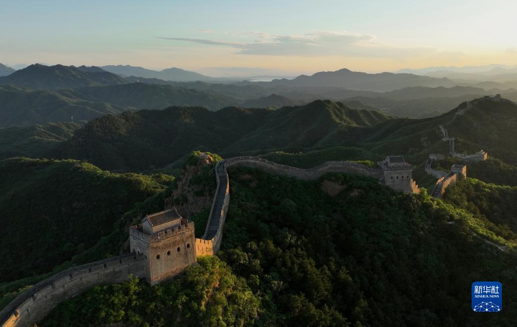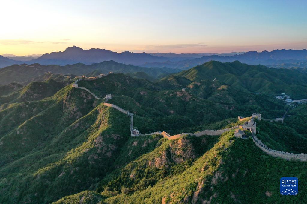 黄昏中的金山岭长城(8月31日摄,无人机照片)。新华社记者 牟宇 摄