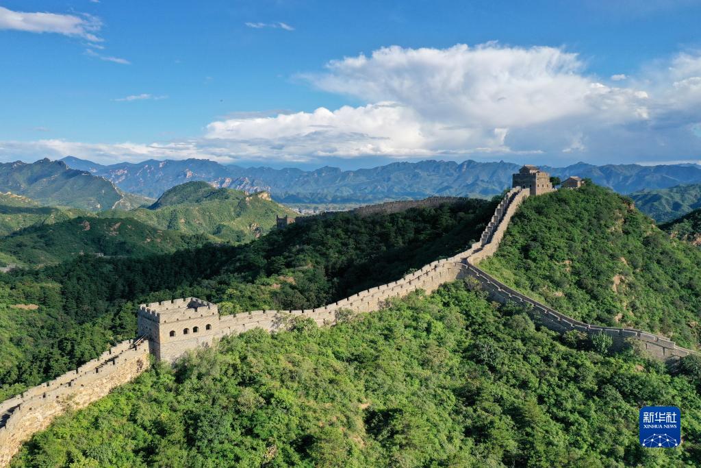这是8月31日拍摄的金山岭长城景色(无人机照片)。新华社记者 陈斌 摄