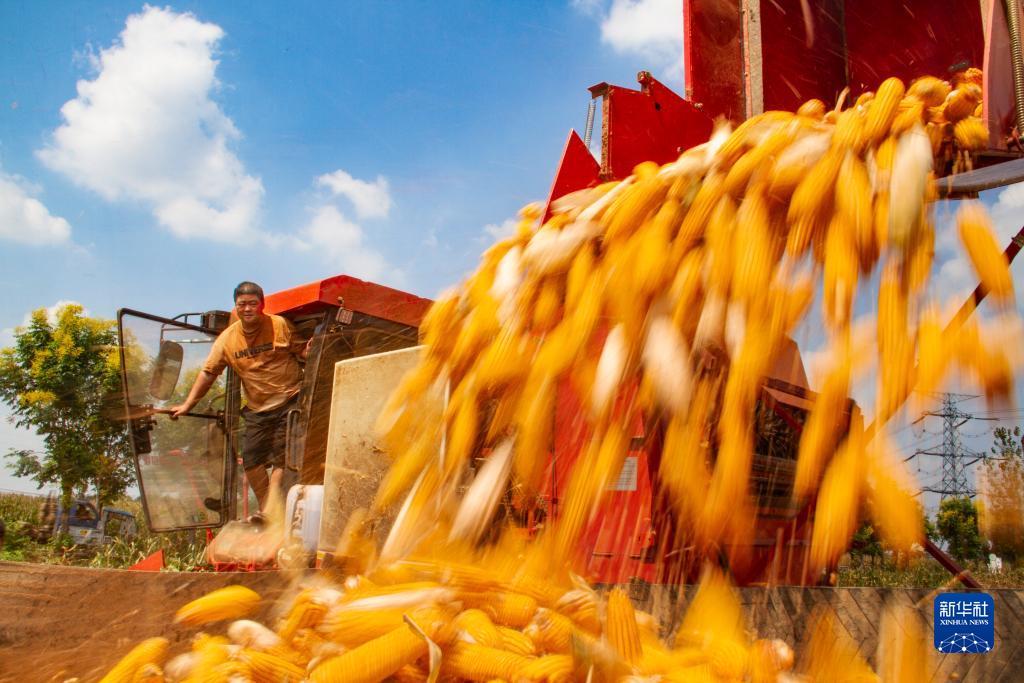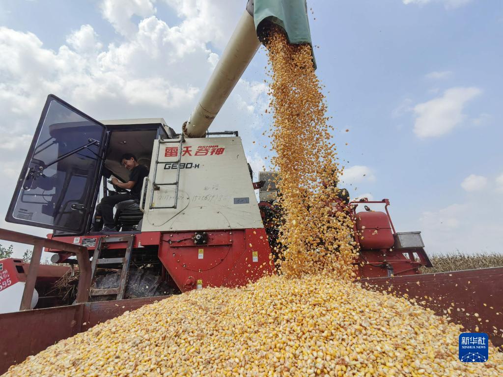 9月14日,村民在河南省商丘市夏邑县会亭镇孙庄村收获玉米。新华社发(王高超 摄)