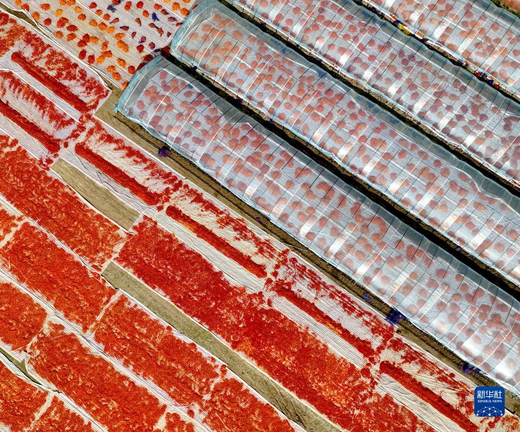9月14日在安徽省亳州市谯城区双沟镇任小庙村拍摄的晾晒的辣椒。新华社发(刘勤利 摄)