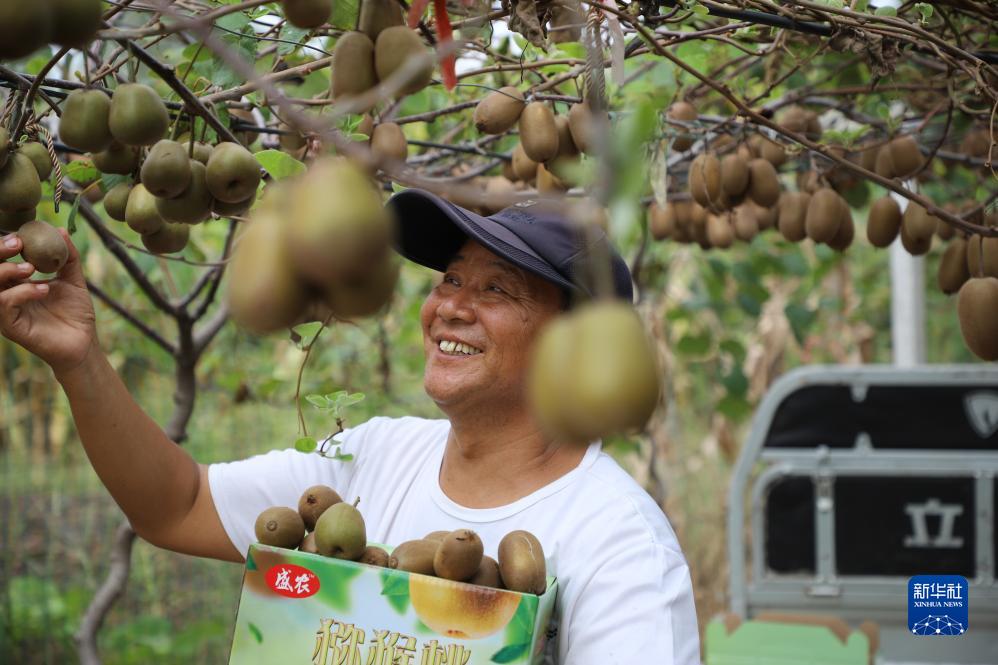 9月14日,农民在河南省驻马店市驿城区诸市镇石庄村猕猴桃种植园采摘猕猴桃。新华社发(米山 摄)