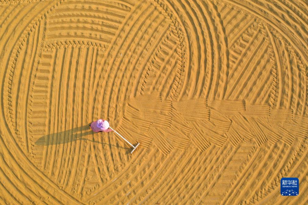 9月14日,河南省宝丰县龙王沟乡村振兴示范区的农民在晾晒谷子(无人机照片)。新华社发(何五昌 摄)