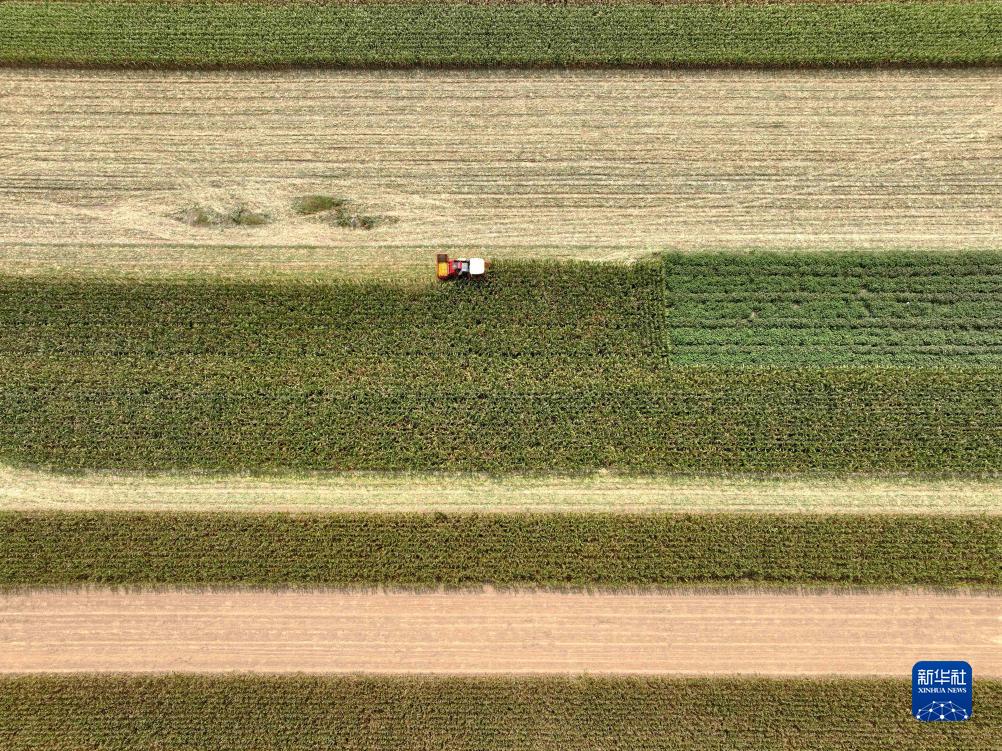 9月14日,农民驾驶农机在河南省驻马店市汝南县罗店镇袁庄村收获成熟的玉米。新华社发(孙凯 摄)