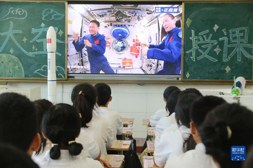 9月21日,在湖北省宜昌市秭归县实验小学,学生收看“天宫课堂”第四课。新华社发(王辉富摄)