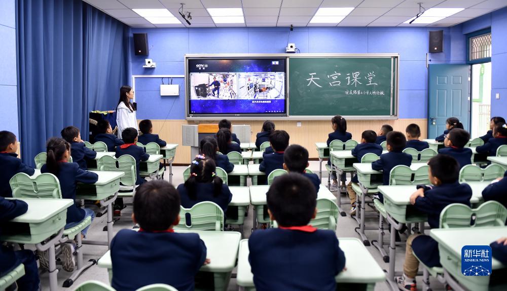 9月21日,在安徽省合肥市安庆路第三小学大杨分校,学生收看“天宫课堂”第四课。新华社发(葛传红摄)