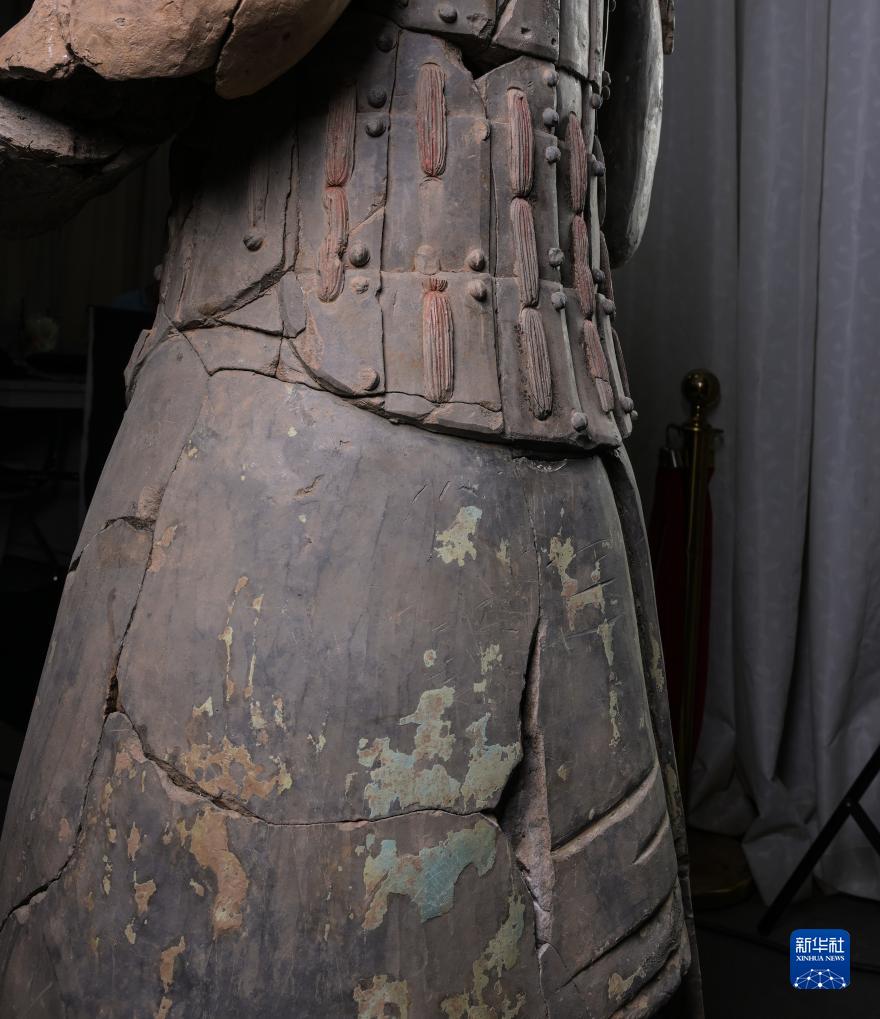 这是秦俑身上彩绘还原修复后的样貌(8月23日摄)。新华社记者 王毓国 摄