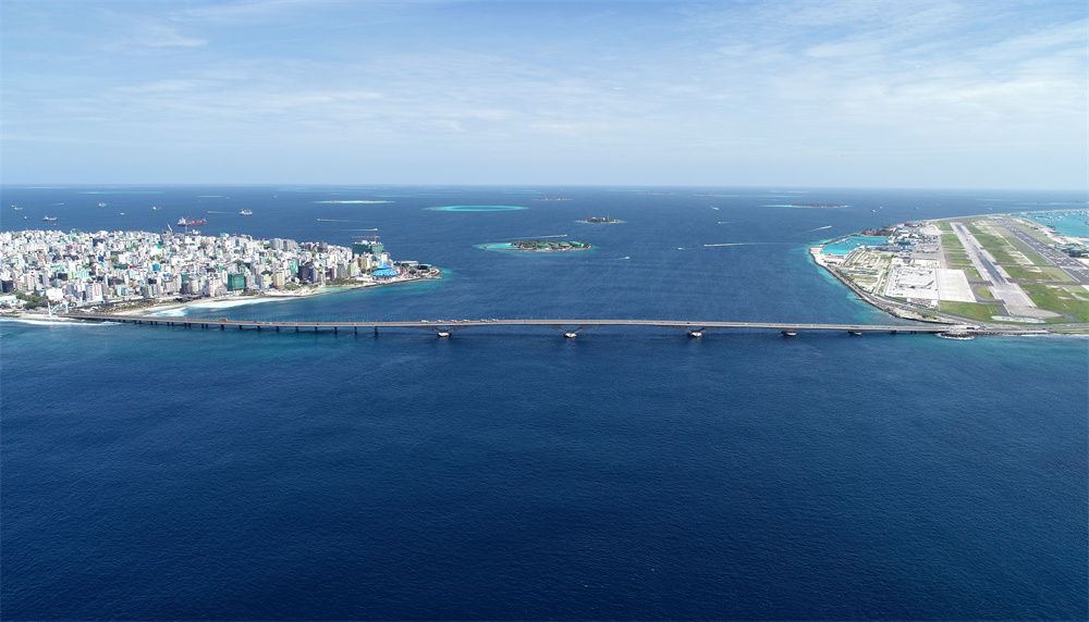 这是航拍的连接马尔代夫首都马累和机场岛的中马友谊大桥(2019年8月30日摄)。新华社发(王明亮摄)