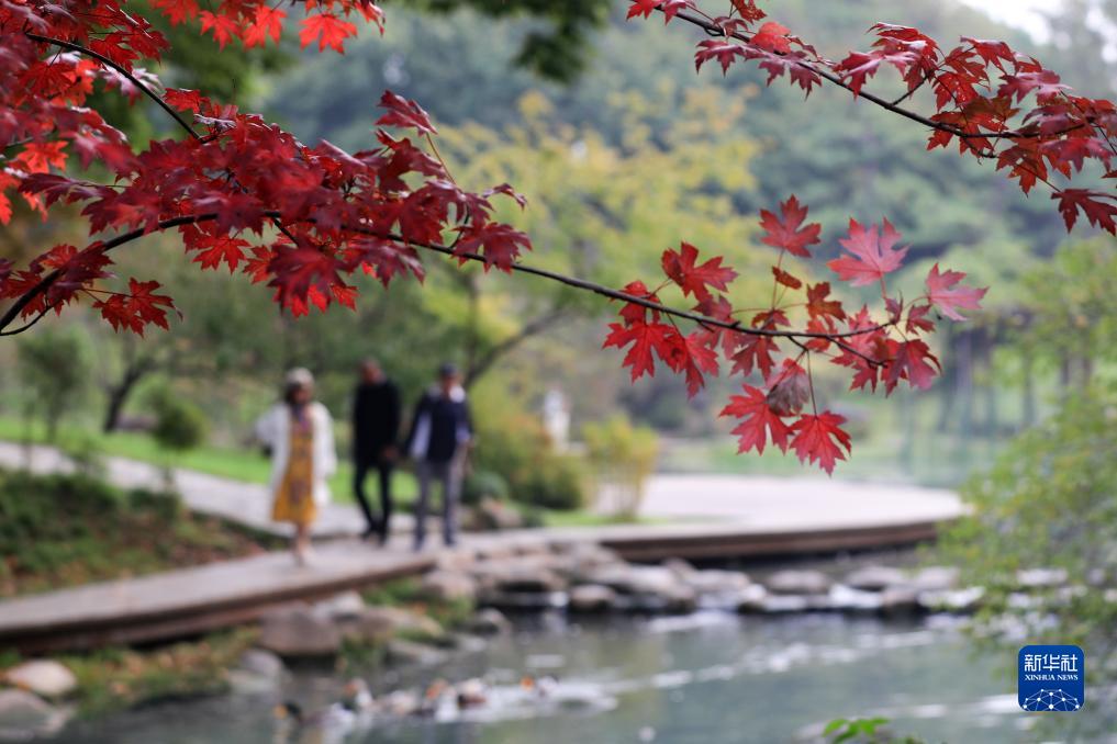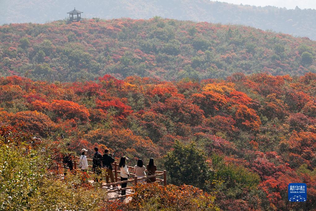 10月14日,游客在河南省焦作市博爱县青天河靳家岭景区欣赏红叶。新华社发(程全摄)