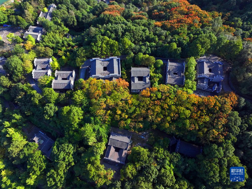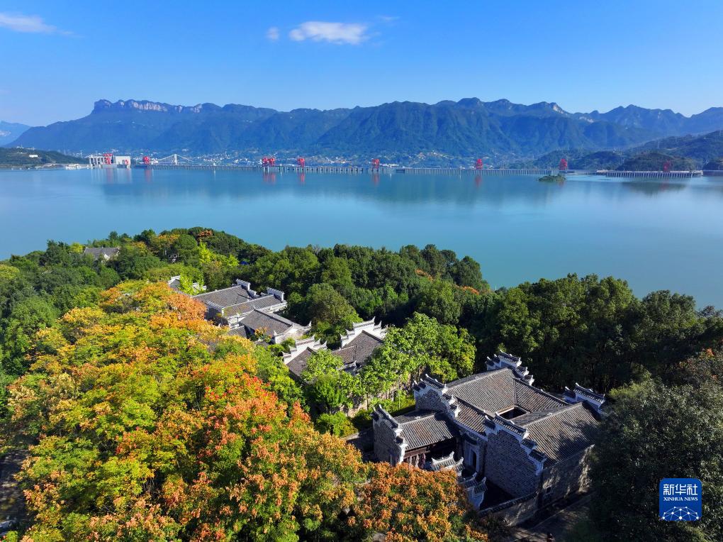 10月14日拍摄的湖北省秭归县屈原故里文化旅游区秋色(无人机照片)。新华社发(王辉富摄)
