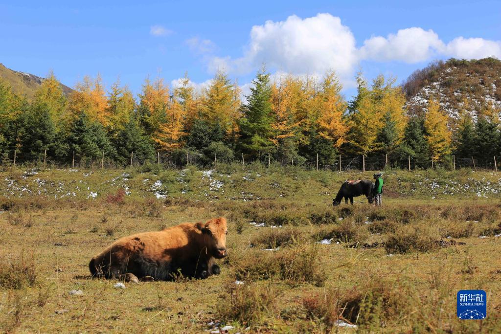 这是10月14日在甘肃省定西市渭源县境内拍摄的秋景。新华社发(王克贤摄)