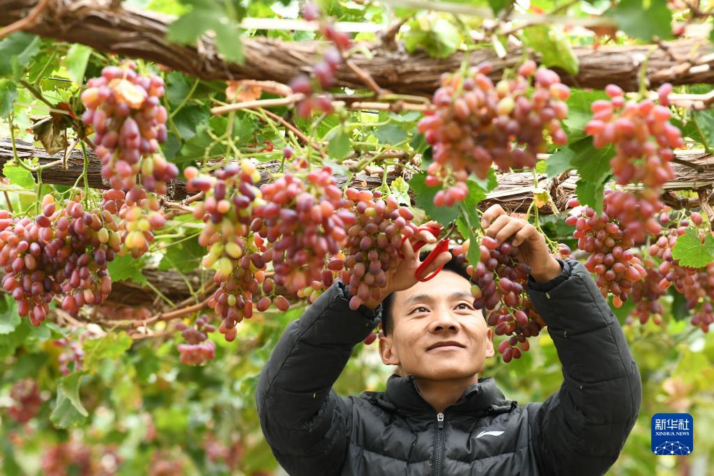 10月24日,果农在云南省丽江市古城区大研街道文智社区的一家葡萄种植基地采摘葡萄。新华社发(赵庆祖 摄)