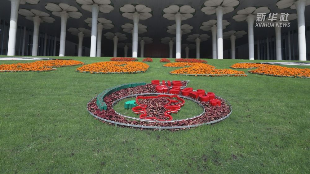 记者在现场看到,国家会展中心(上海)南广场的主体景观已基本搭建完成,以进博会六周年的主题元素设计,整体由“6”和吉祥物熊猫“进宝”组成,总体呈现出鲜明的识别度。