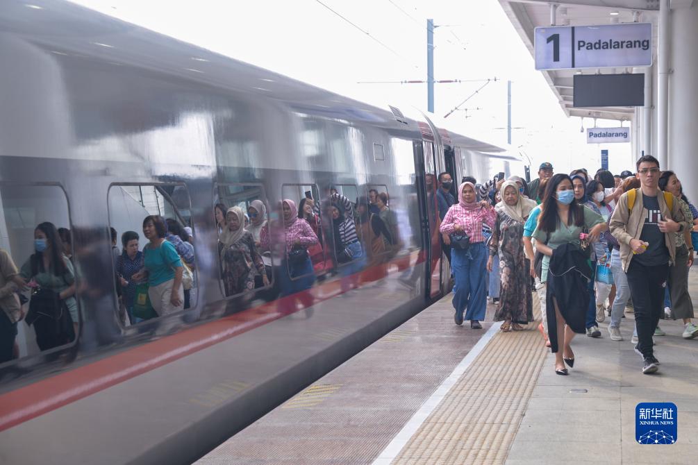 11月5日,在印度尼西亚帕达拉朗站,人们到站下车。新华社记者 徐钦 摄