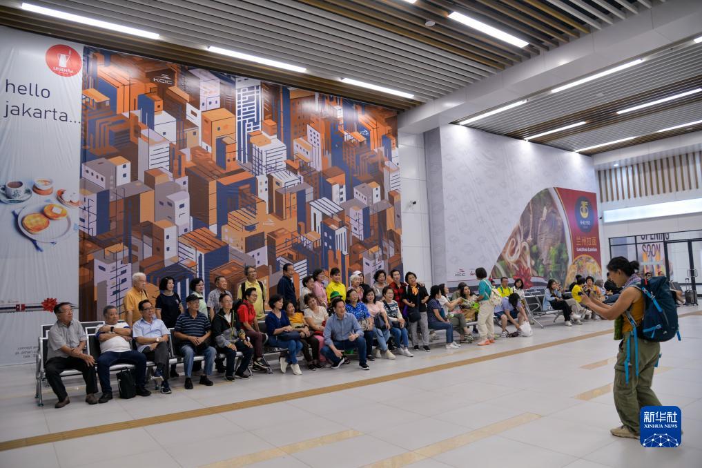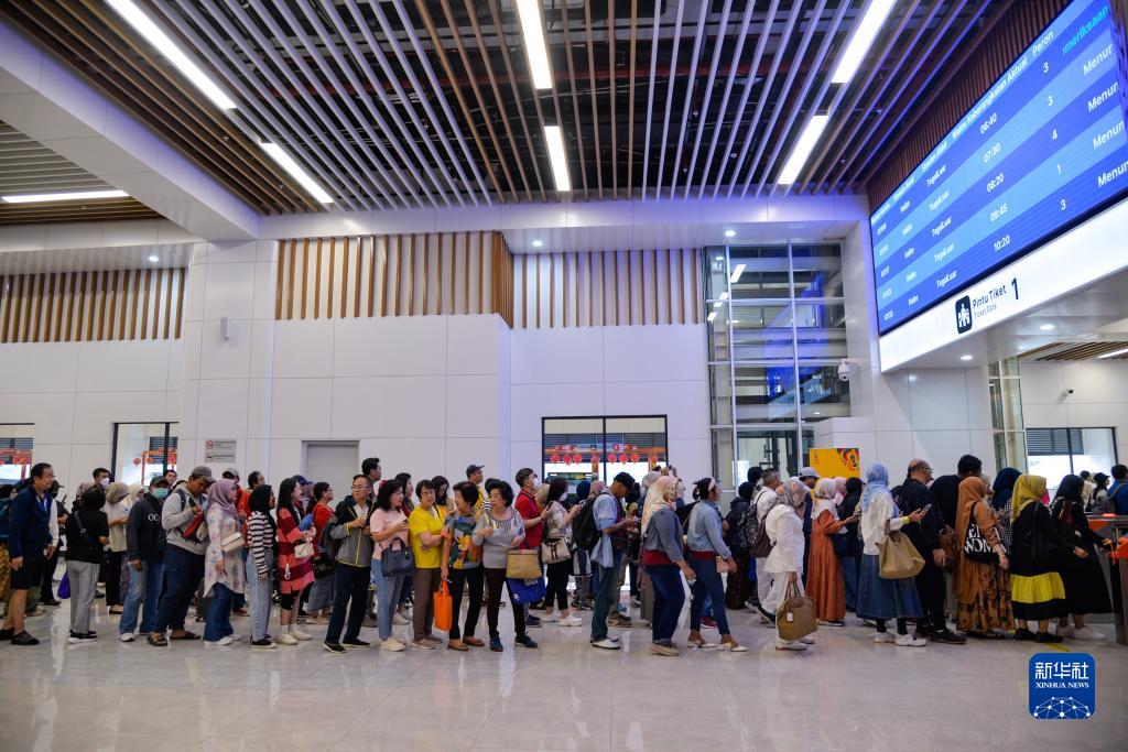 11月5日早,在印度尼西亚雅加达哈利姆站候车大厅,人们排队准备前往站台乘坐当日第一班高铁。新华社记者 徐钦 摄