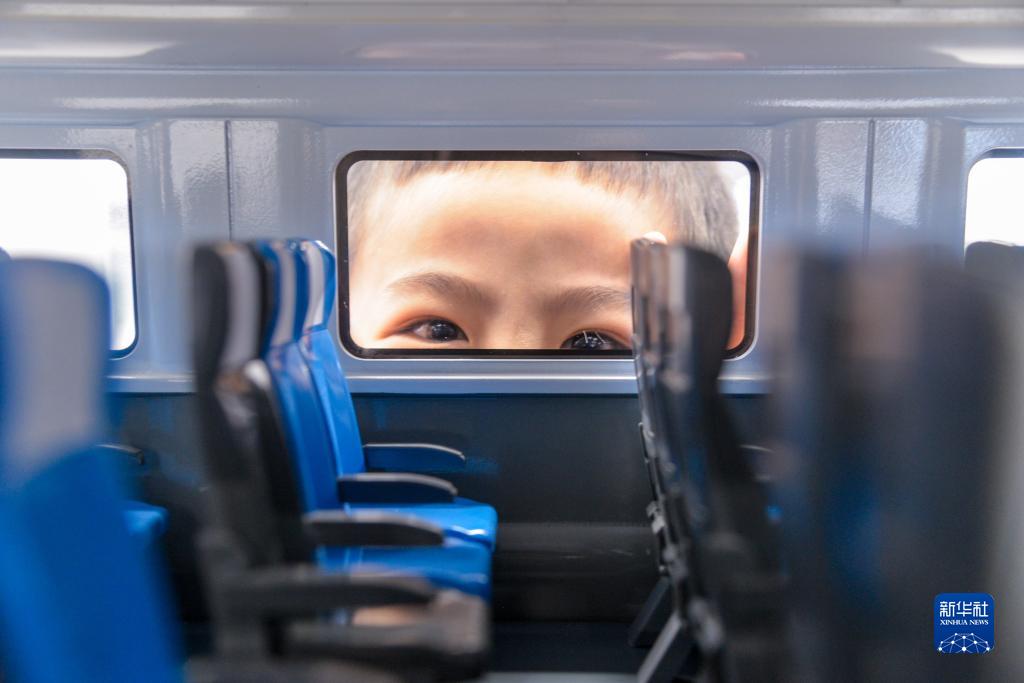 11月5日,在印度尼西亚雅加达哈利姆站候车大厅,一名小朋友在查看一个雅万高铁高速动车组模型的内部构造。新华社记者 徐钦 摄