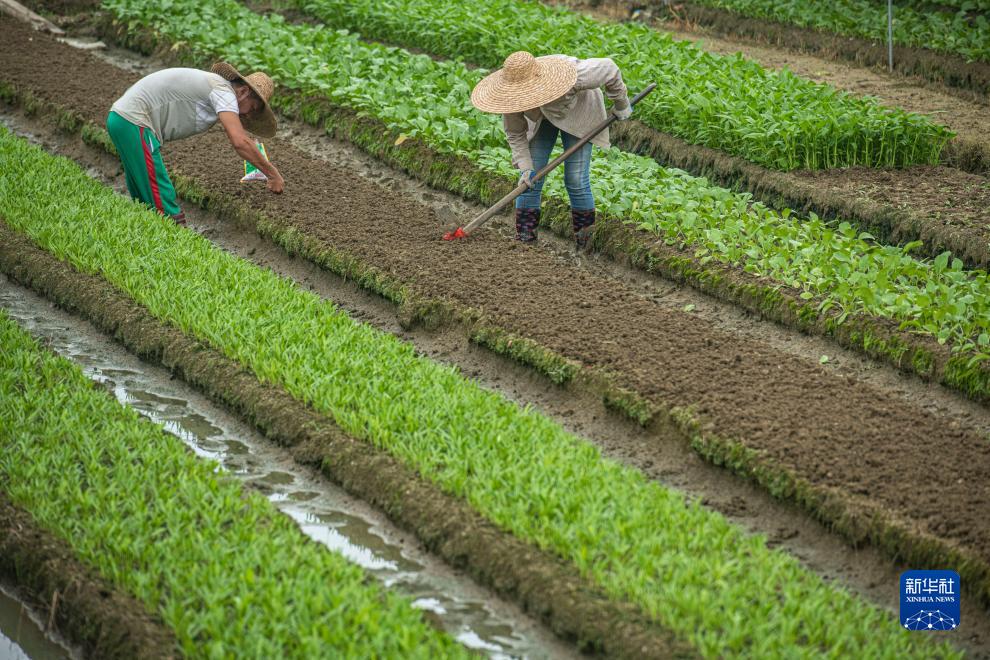 11月7日,在海南省琼海市嘉积镇大坡村,农民在种植叶菜。新华社发(蒙钟德摄)
