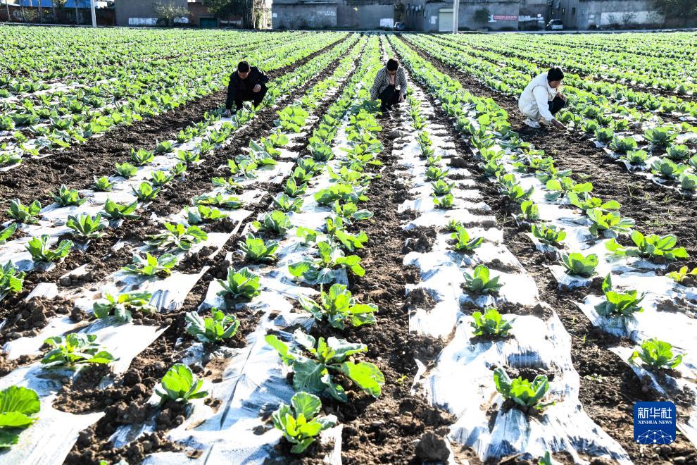 11月7日,在河南省济源市轵城镇,农民在甘蓝制种田里劳作。新华社发(苗秋闹摄)