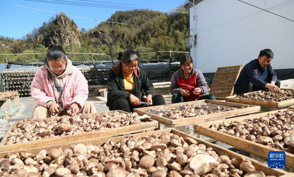 11月6日,在河南省洛阳市汝阳县靳村乡石寨村,农民在挑拣香菇。新华社发(康红军摄)