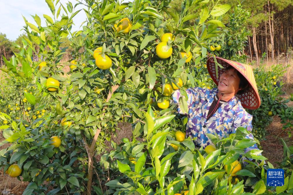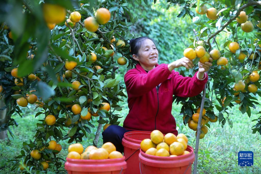 11月7日,在贵州省开阳县南龙乡土香村,果农在采摘蜜橘。新华社发(袁福洪摄)