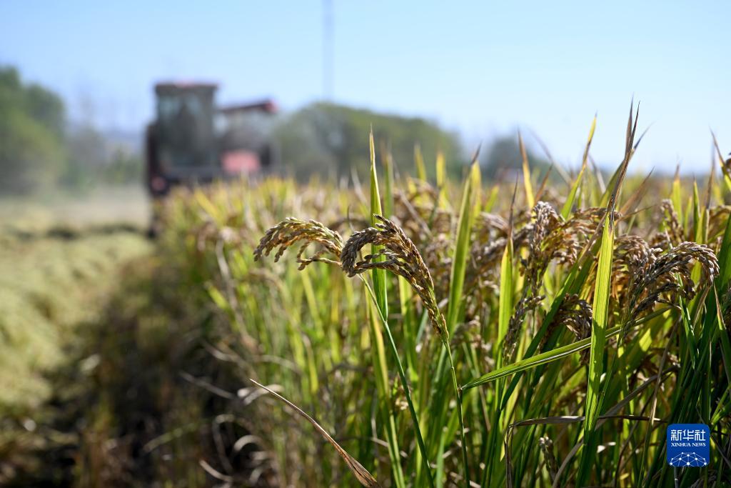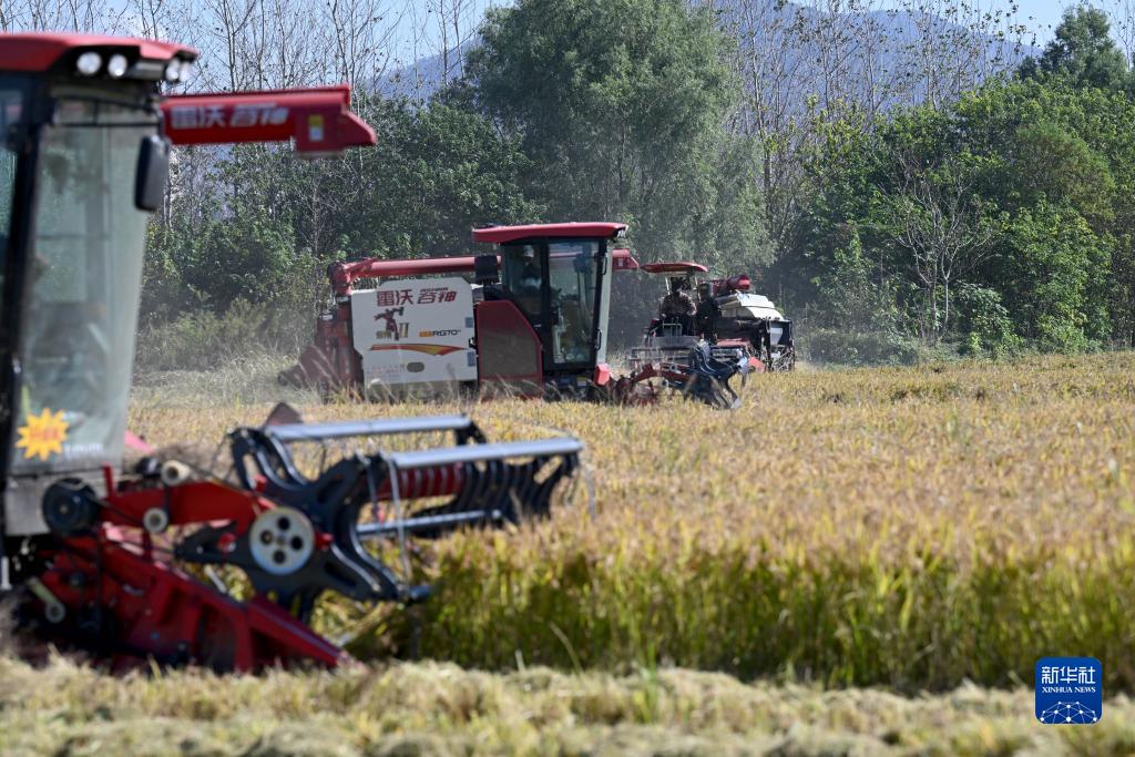 11月7日,在安徽省芜湖市繁昌区荻港镇,村民驾驶收割机收割水稻。新华社记者 黄博涵 摄