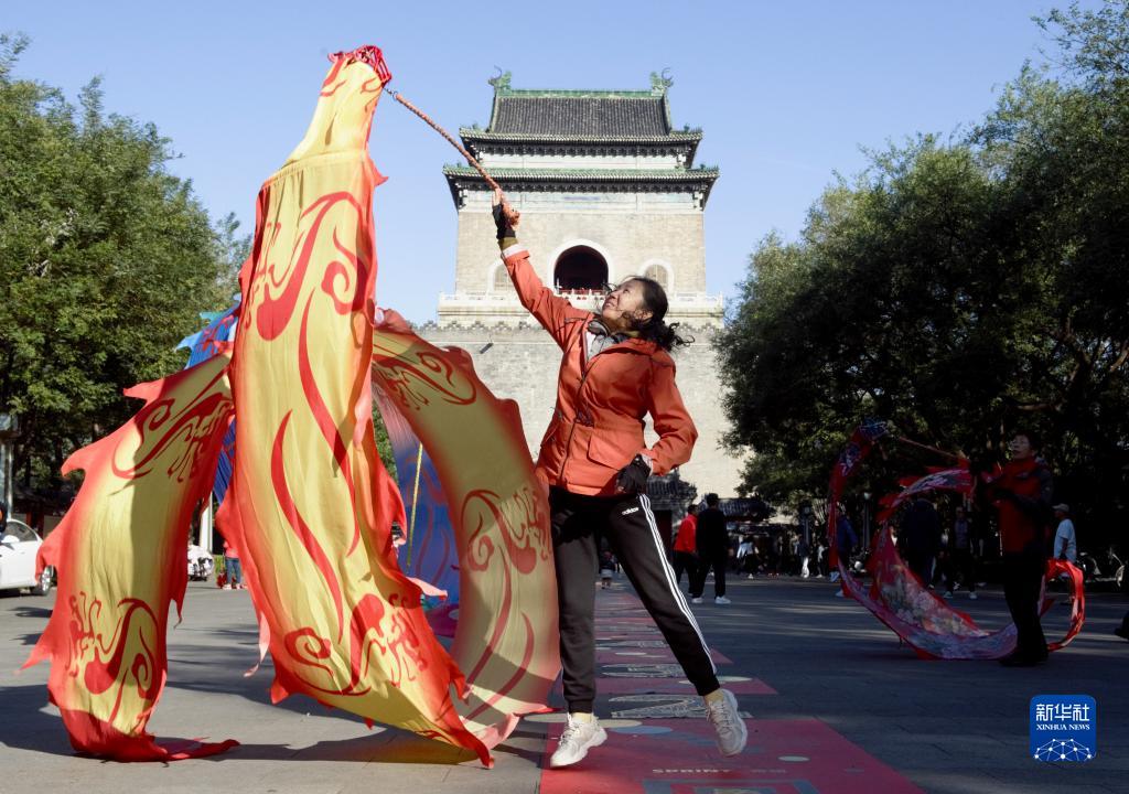 市民在北京钟楼前锻炼身体(11月7日摄)。钟鼓楼位于北京中轴线的最北端,两楼前后纵置,气势雄伟。作为元、明、清三代都城的报时中心,至今已有700多年的历史。新华社记者 罗晓光 摄