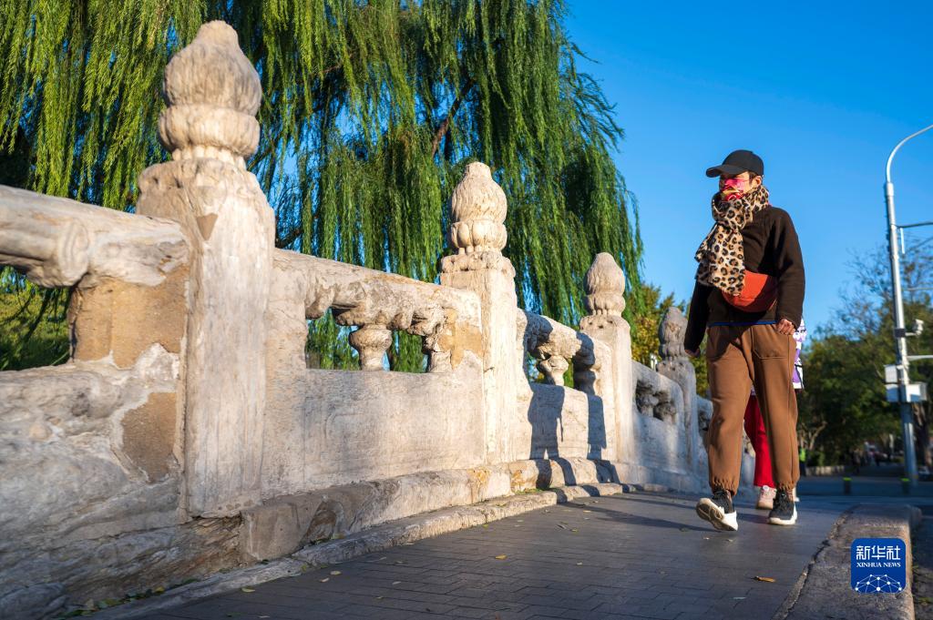 行人从北京万宁桥上走过(11月6日摄)。万宁桥位于北京地安门外大街中部、什刹海东岸,是北京中轴线上最古老的桥梁,至今已有700多年历史。作为北京中轴线与大运河玉河段的交汇点,自元代始建起,万宁桥一直承担着南北交通的重要功能。新华社记者 才扬 摄