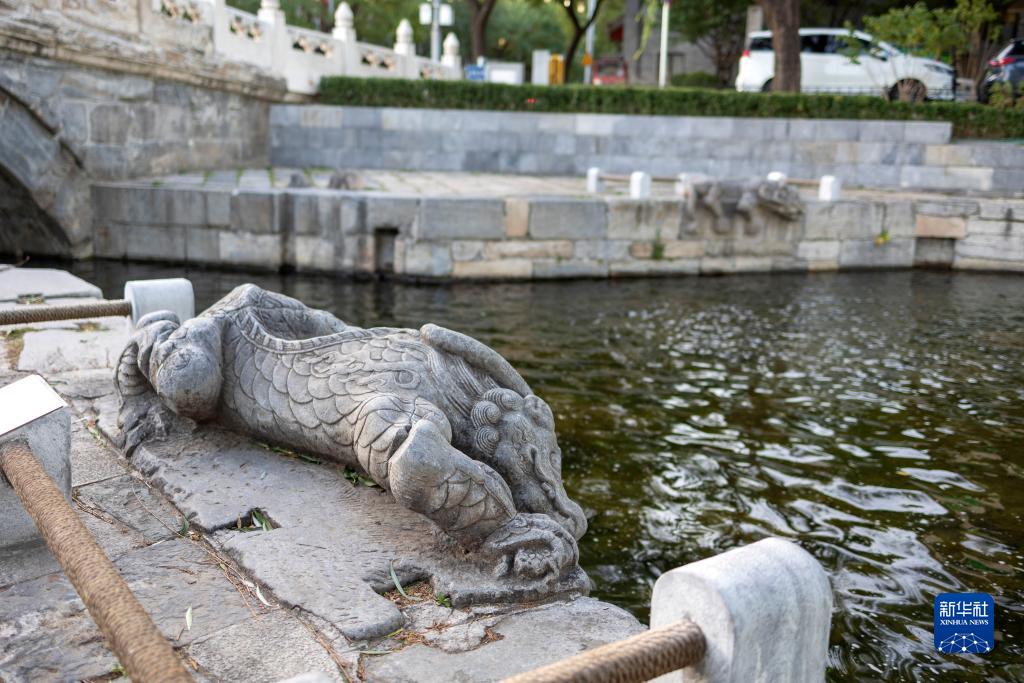 北京万宁桥的镇水兽(11月6日摄)。万宁桥位于北京地安门外大街中部、什刹海东岸,是北京中轴线上最古老的桥梁,至今已有700多年历史。作为北京中轴线与大运河玉河段的交汇点,自元代始建起,万宁桥一直承担着南北交通的重要功能。新华社记者 才扬 摄