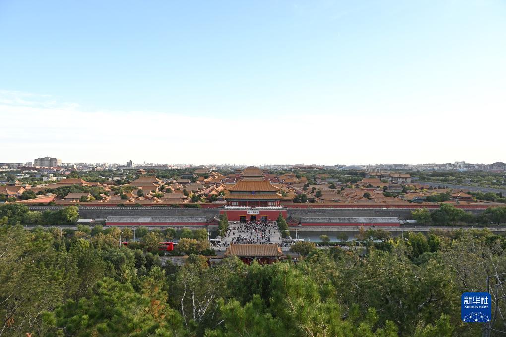 从景山上拍摄的故宫(10月19日摄)。始建于1406年的故宫是世界上现存规模最大、最完整的古代木构宫殿建筑群,位于北京中轴线的中心。1987年联合国教科文组织将其列入世界文化遗产名录。新华社记者 李鑫 摄