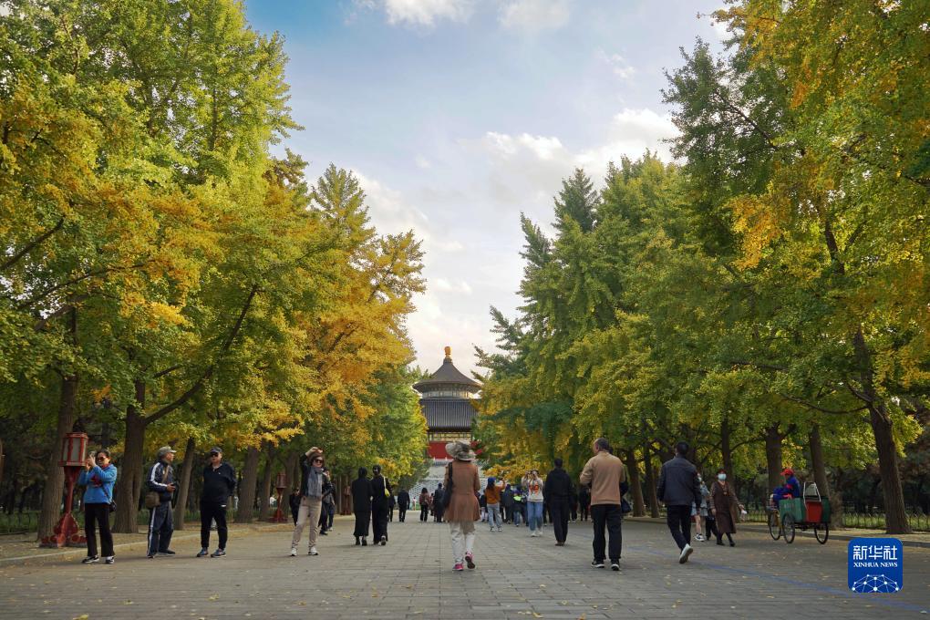 游客在天坛游玩(11月3日摄)。天坛始建于明永乐十八年(1420年),是世界上现存规模最大、保存最完整的古代祭天建筑群,1998年被列入世界文化遗产名录。新华社记者 穆问春 摄