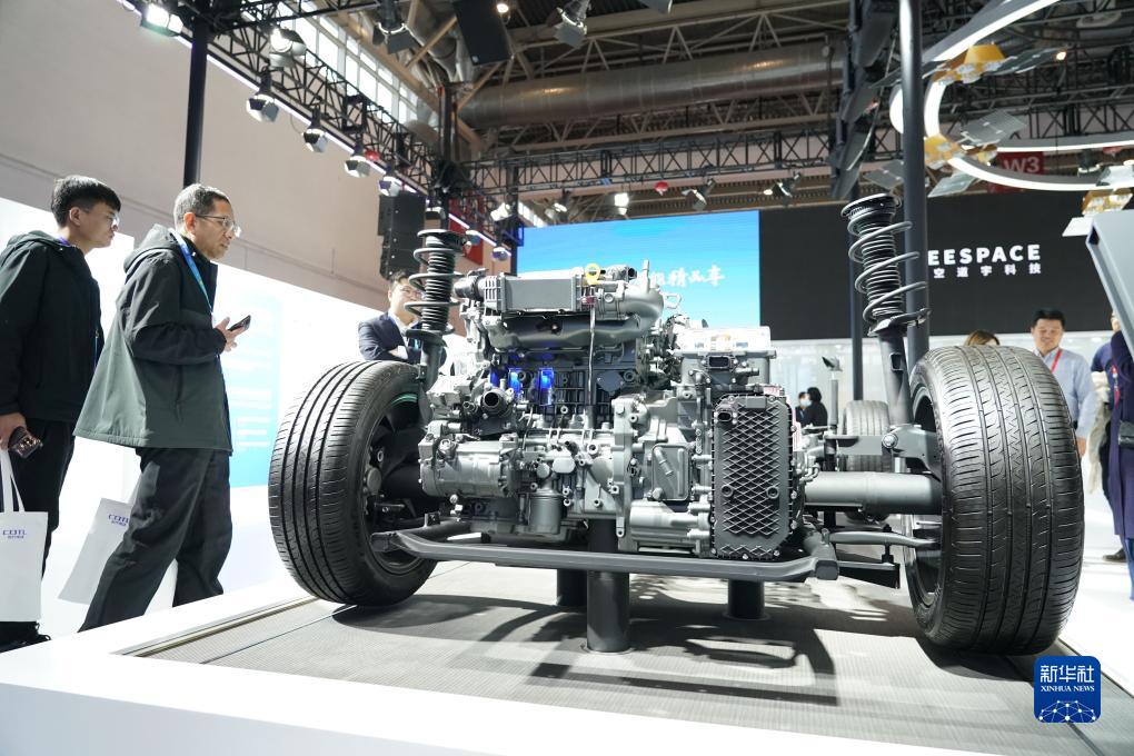 这是11月28日在智能汽车链展区吉利汽车集团展位拍摄的“雷神”电混系统。新华社记者 任超 摄