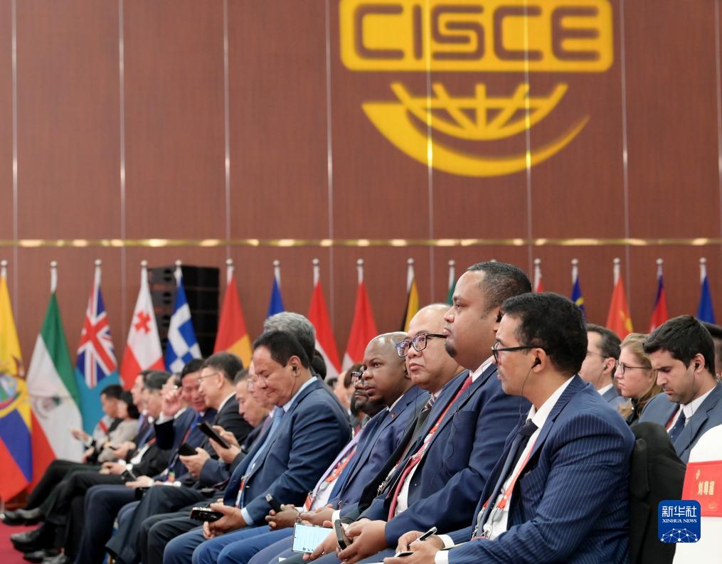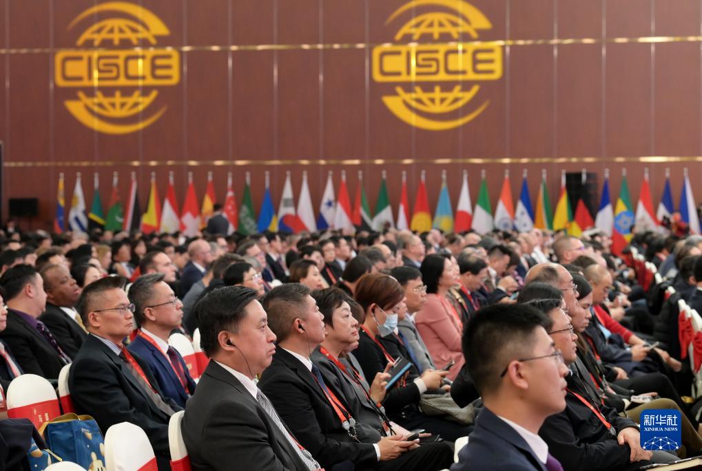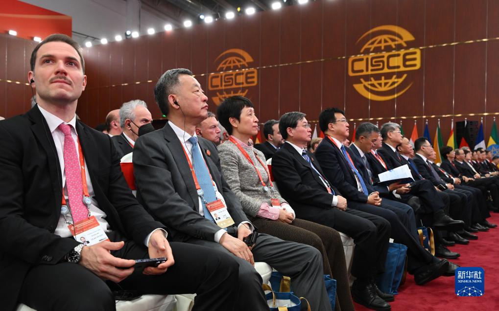 11月28日,中外与会嘉宾在博览会开幕式现场聆听主旨演讲。新华社记者 李贺 摄