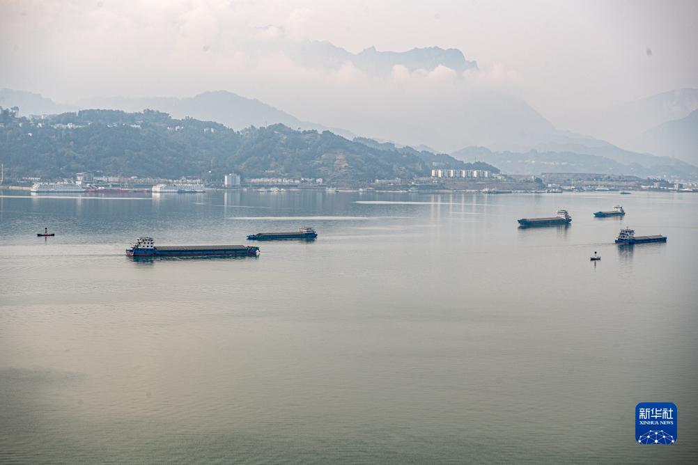12月1日,船舶行驶在三峡大坝附近水域。新华社记者 唐奕 摄