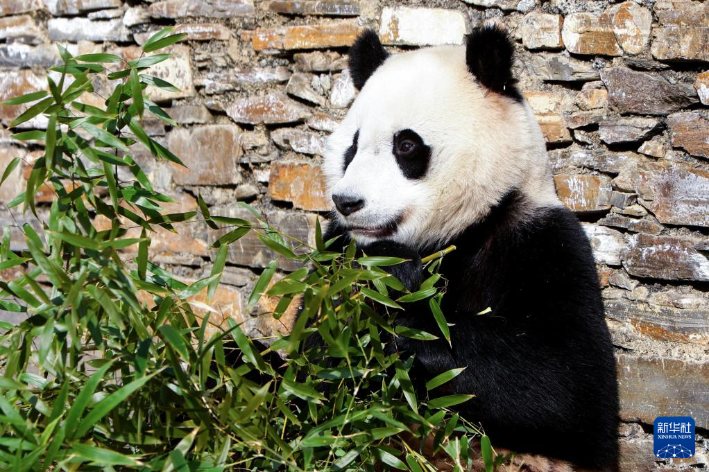 12月27日,在中国大熊猫保护研究中心卧龙神树坪基地,大熊猫“小奇迹”在吃竹子。新华社发(陈居伟 摄)