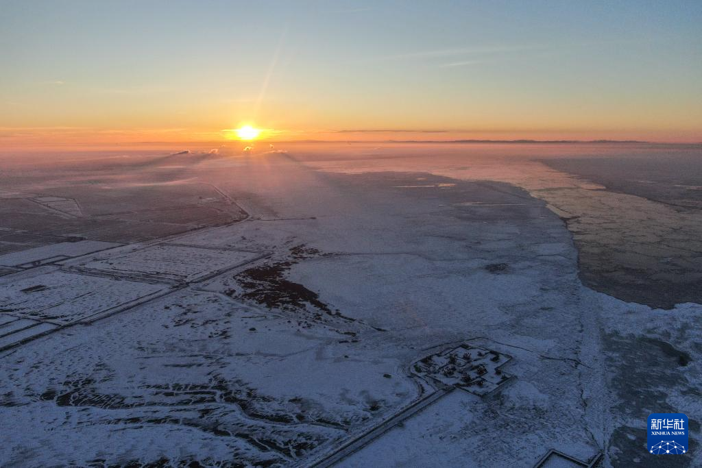 这是1月1日在辽宁省盘锦市中国石油辽河油田拍摄的日出(无人机照片)。新华社记者 潘昱龙 摄