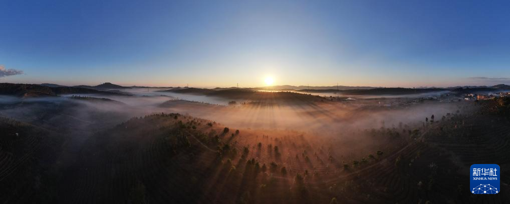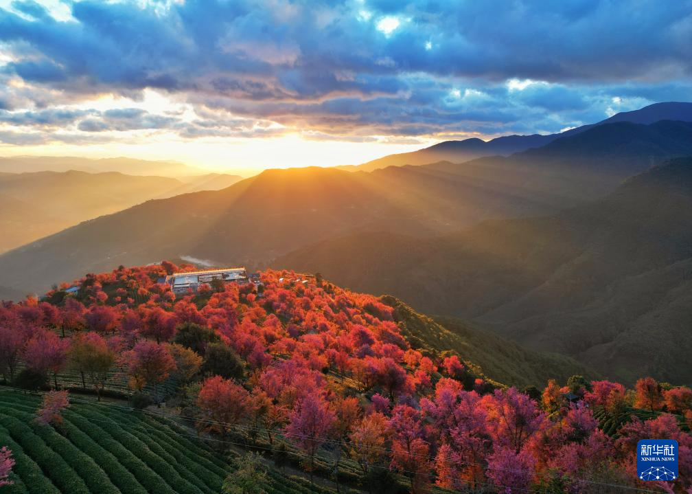 1月1日,位于云南省大理白族自治州南涧彝族自治县的无量山樱花谷迎来2024年第一缕阳光(无人机照片)。新华社发(适志宏 摄)