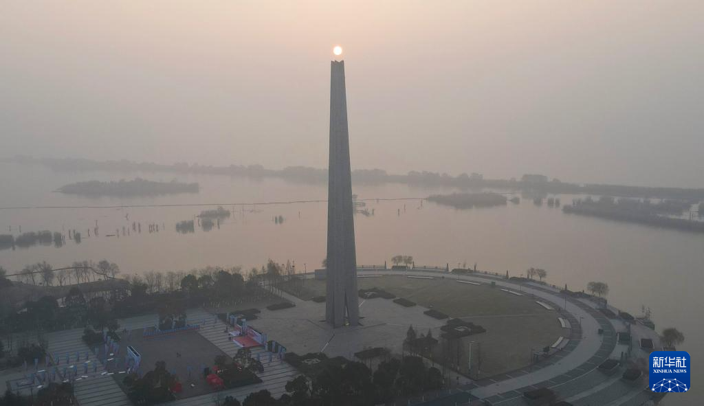 这是1月1日在安徽省合肥市渡江战役纪念馆附近拍摄的晨光(无人机照片)。新华社记者 周牧 摄
