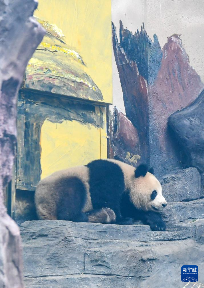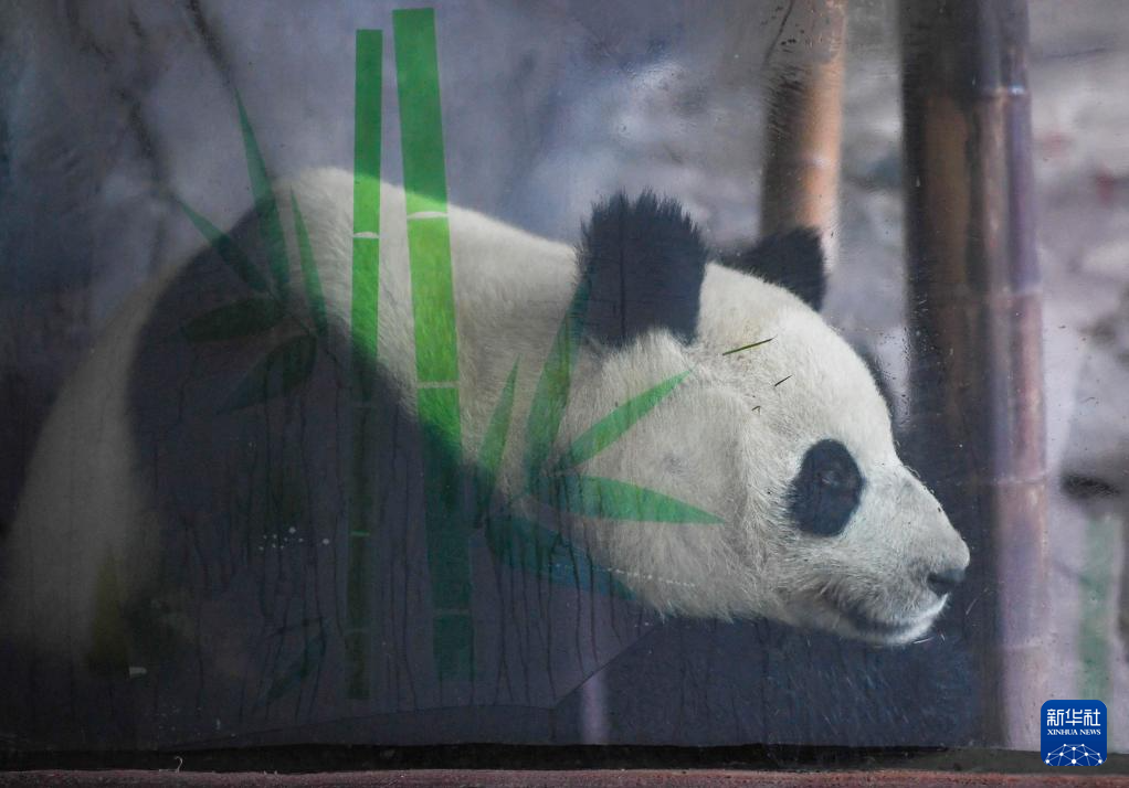 这是1月3日在重庆永川乐和乐都动物主题乐园熊猫馆拍摄的大熊猫“青花”。新华社记者 王全超 摄