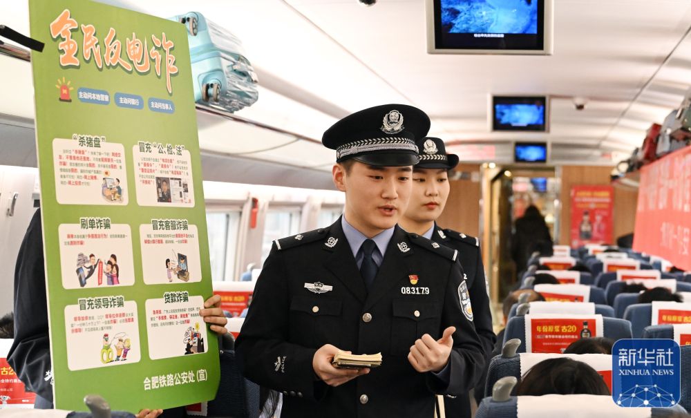 1月8日,合肥铁路公安处乘警支队民警在G8323次列车上和旅客进行反电诈知识互动问答。