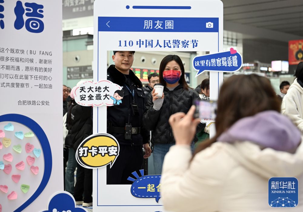 在第四个中国人民警察节来临之际,合肥铁路公安处组织民警和工作人员在合肥南站候车室、G8323次列车上开展赠送姜茶、反诈知识有奖问答等活动,警民互动共同庆祝人民警察节。