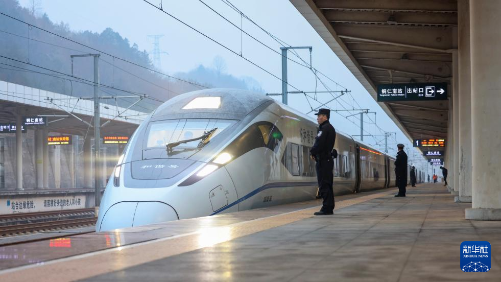 1月9日,一列动车组列车停靠在沪昆高铁贵州铜仁南站。新华社发(胡攀学 摄)