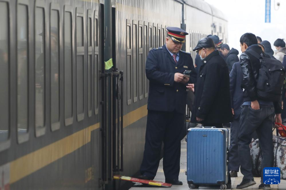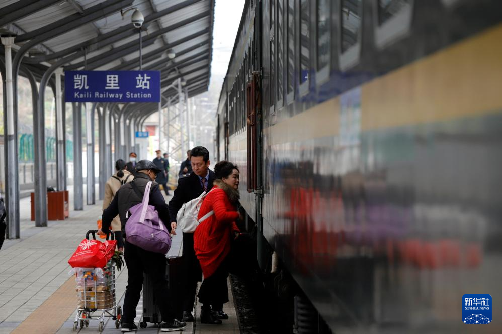 1月9日,旅客在贵州省凯里火车站乘坐公益性慢火车出行。新华社发(吴吉斌 摄)