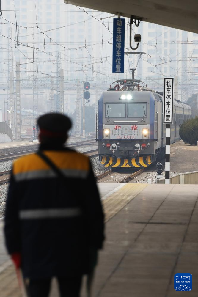1月9日,一列客运列车驶入山东滕州站。新华社发(孙杨 摄)