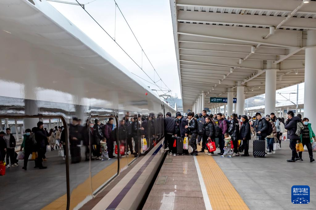 1月9日,旅客在贵阳东站乘车。新华社发(范晖 摄)